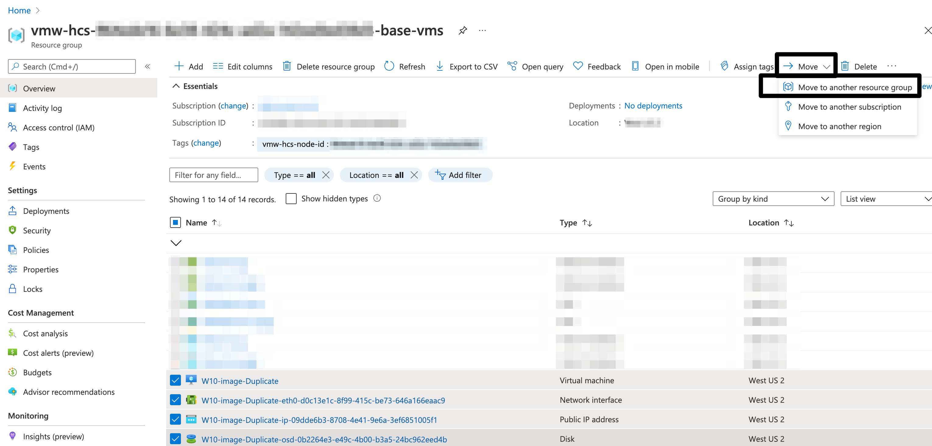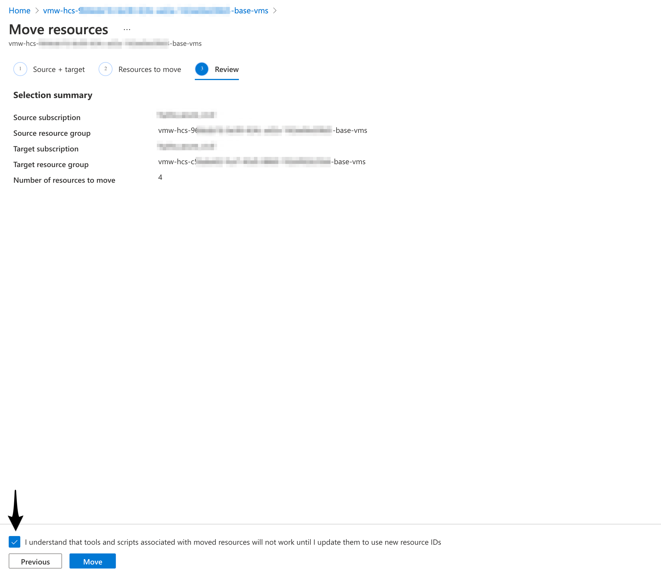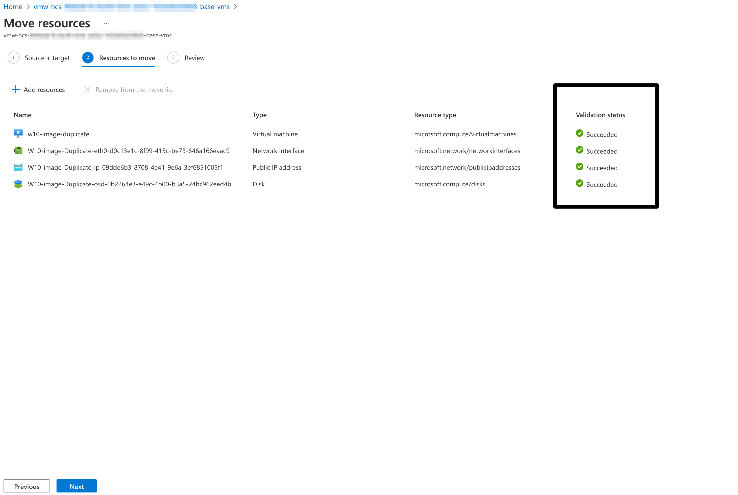 - Select the VM resources that needs to be moved