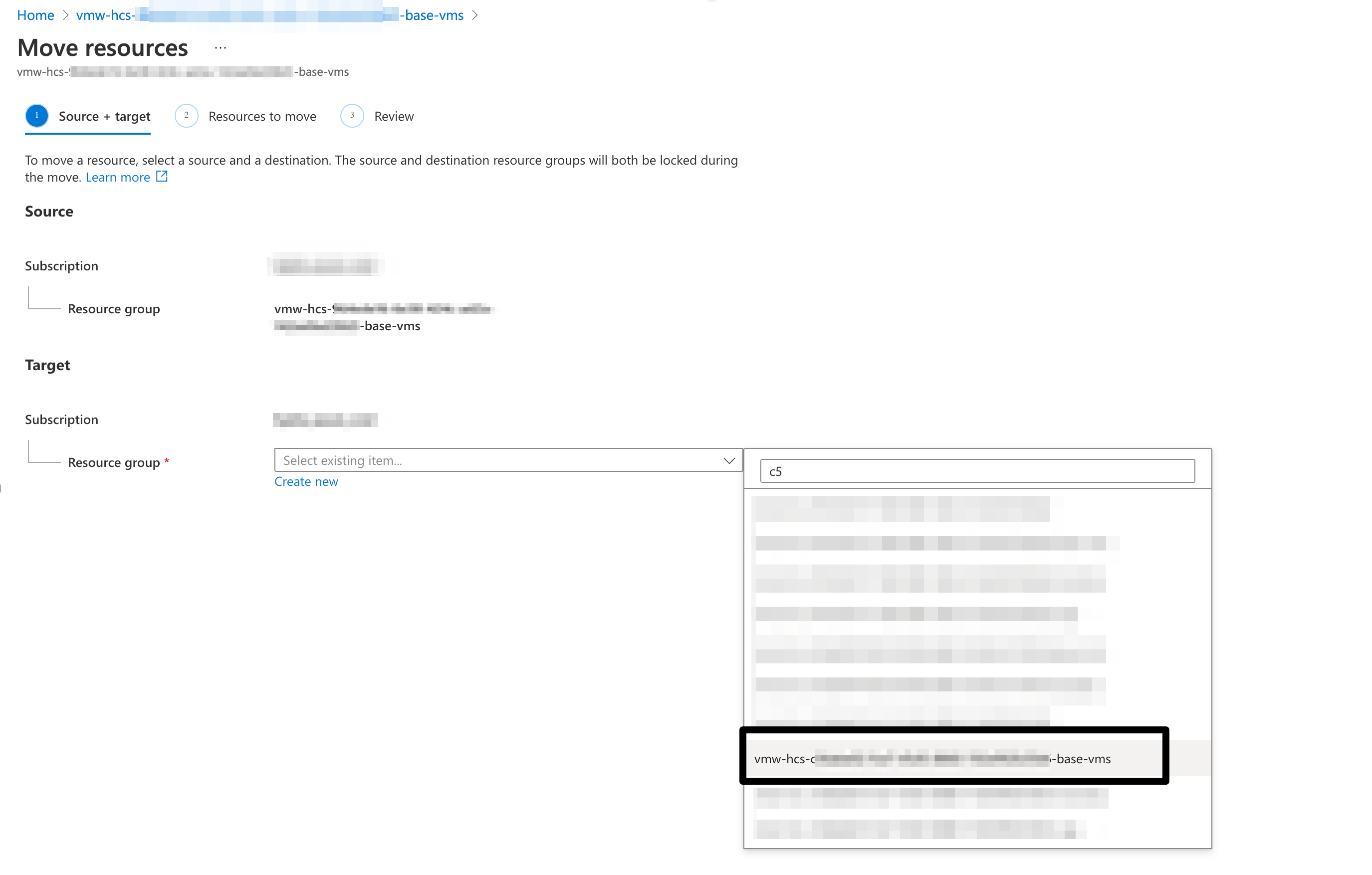 - Select the target Resource group